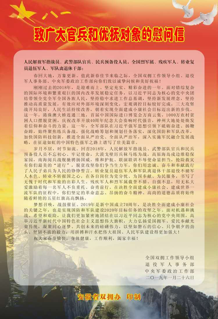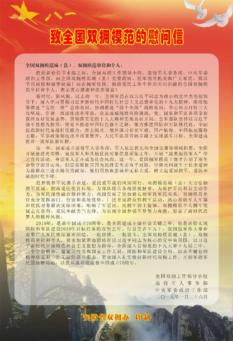 安徽省雙擁辦慰問(wèn)信