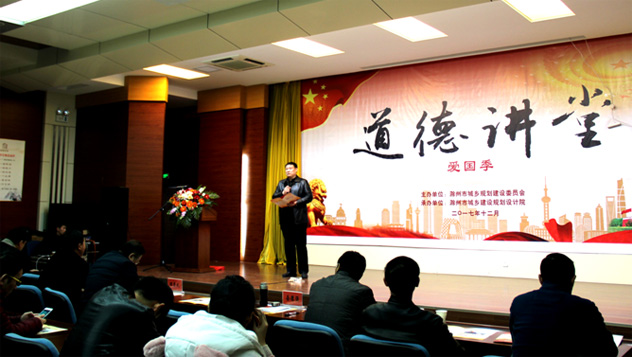 為了進一步培育和踐行社會主義核心價值觀,夯實公民思想道德教育活動平臺,大力宣傳學(xué)習(xí)道德模范和身邊好人的感人事跡,不斷提高文明單位創(chuàng)建水平, 2017年12月8日下午在市規(guī)劃建設(shè)委附屬二樓會議中心,由市城鄉(xiāng)規(guī)劃建設(shè)委員會主辦、市城鄉(xiāng)規(guī)劃設(shè)計院承辦的市規(guī)建系統(tǒng)2017年度“道德講堂——愛國季”活動。市規(guī)建委機關(guān)、在建設(shè)大廈委屬二級機構(gòu)在崗?fù)、其他委屬單位代表?20多人參加,市規(guī)建委主任、委黨組書記朱林及部分在崗委領(lǐng)導(dǎo)共同參加本次講堂活動。