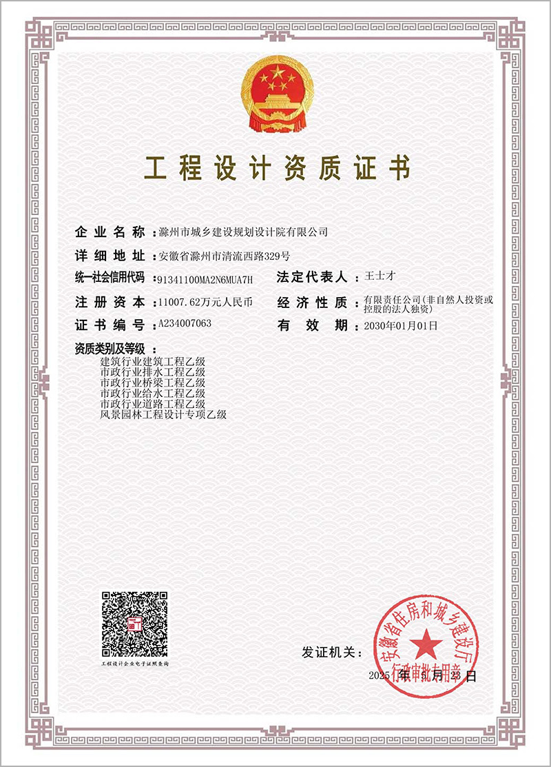 工程設(shè)計(jì)資質(zhì)證書(shū)(建筑、排水、橋梁、給水、道路、風(fēng)景園林)